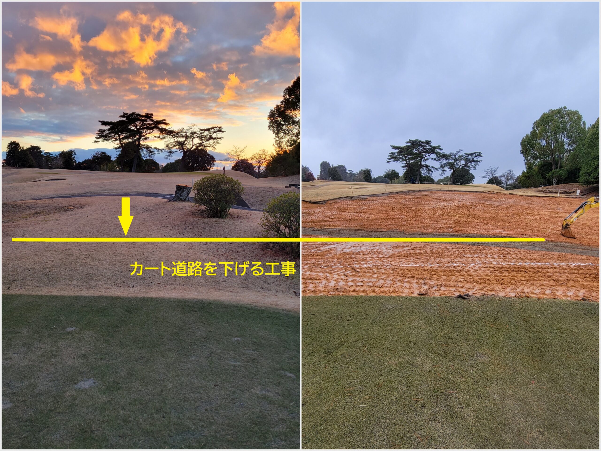 この工事に伴い、現在3番ホールのカート道路はう回路を回っていただいています。