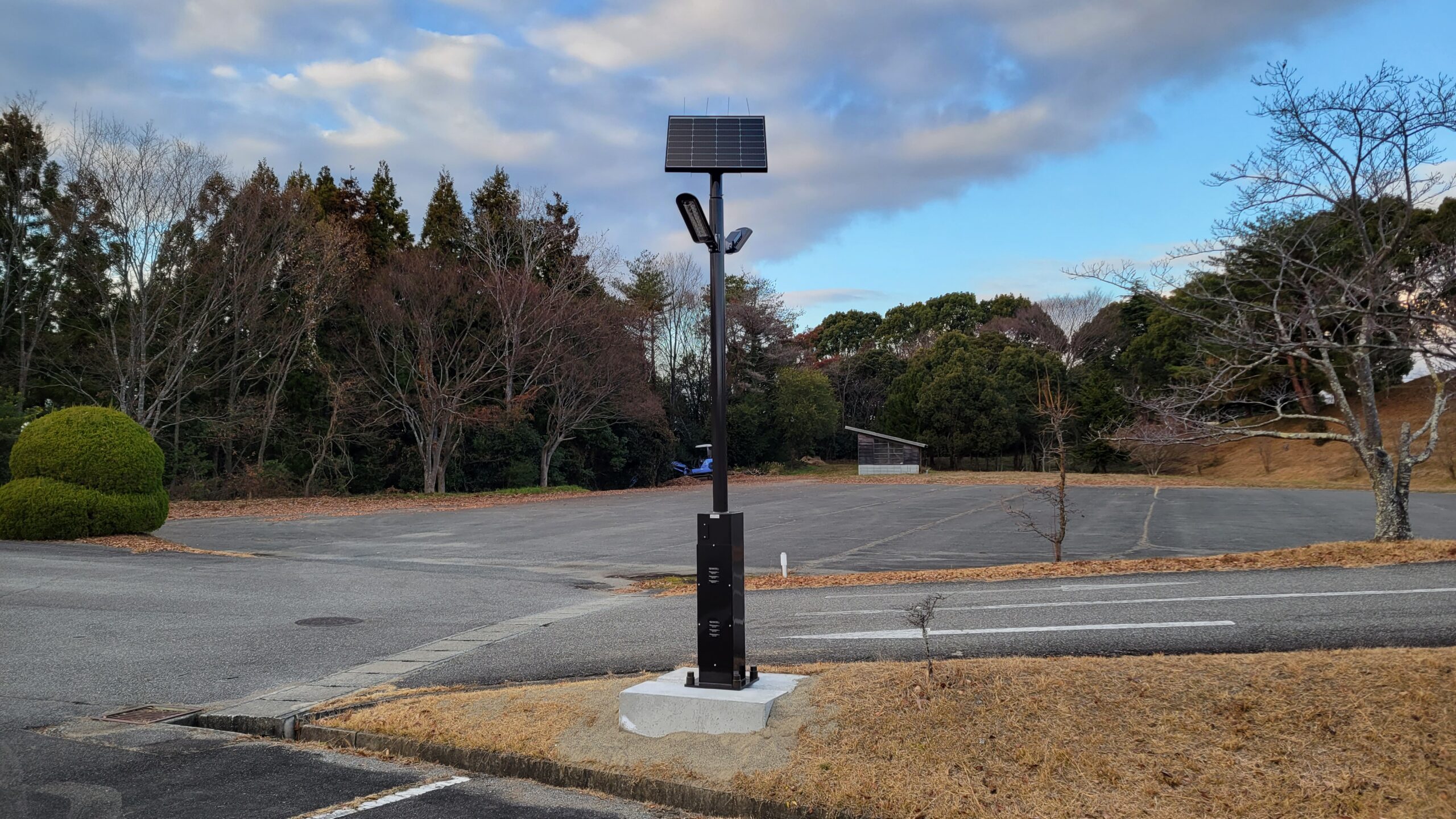 まずは2023年12月までに、クラブハウス周辺の水銀灯を使った街灯に止め、太陽光発電による独立型LED街灯を10基設置しました。
