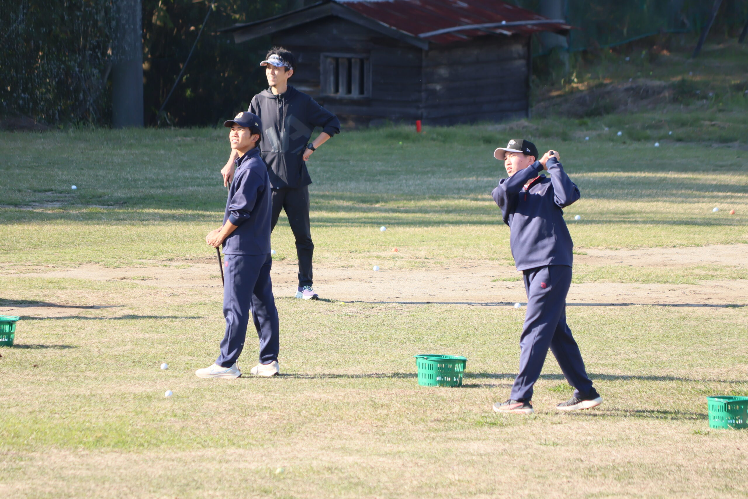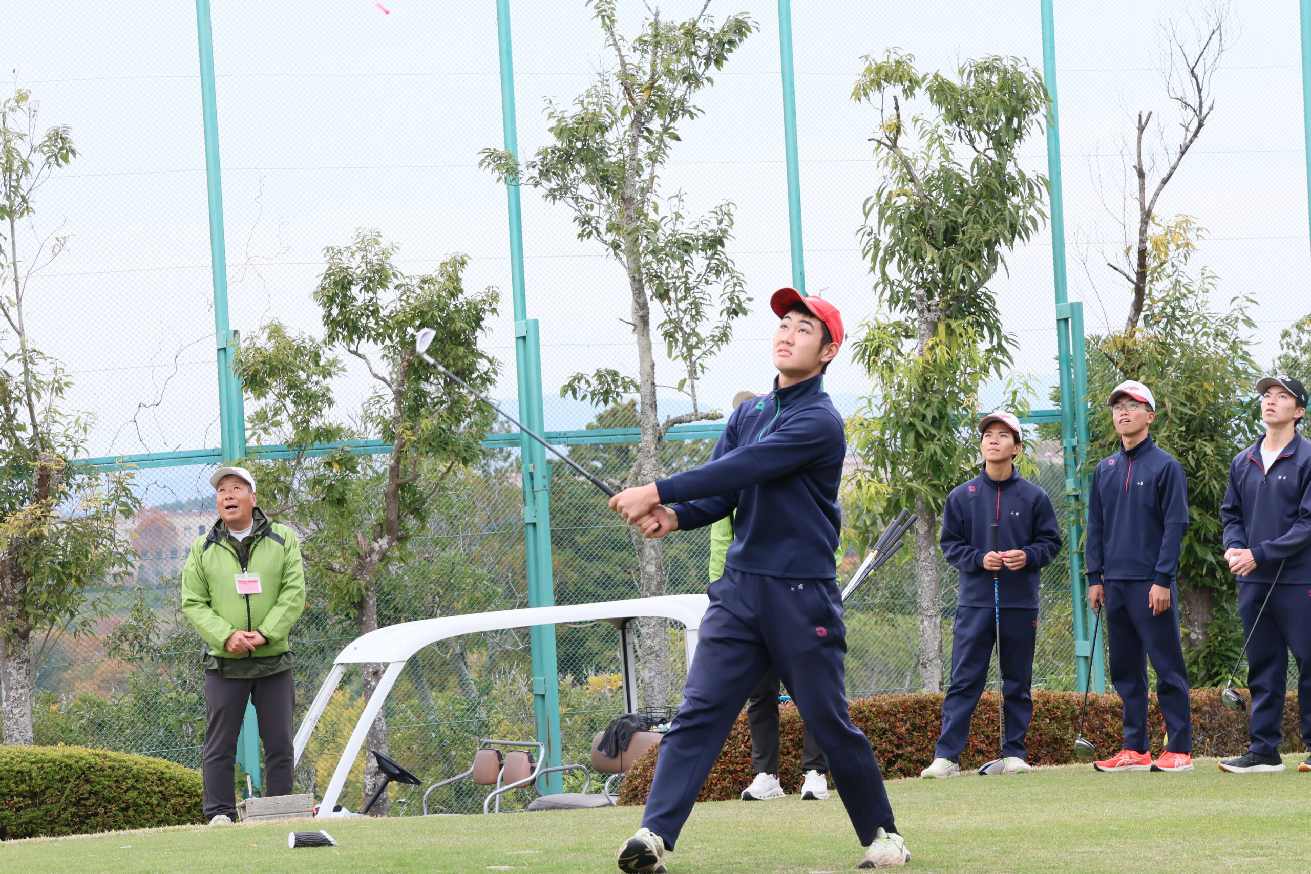 13:25~15:00まで2限分を使って、前半5回は有馬カンツリー倶楽部の練習場で、そして最終日はコースに出てのラウンド体験授業です。