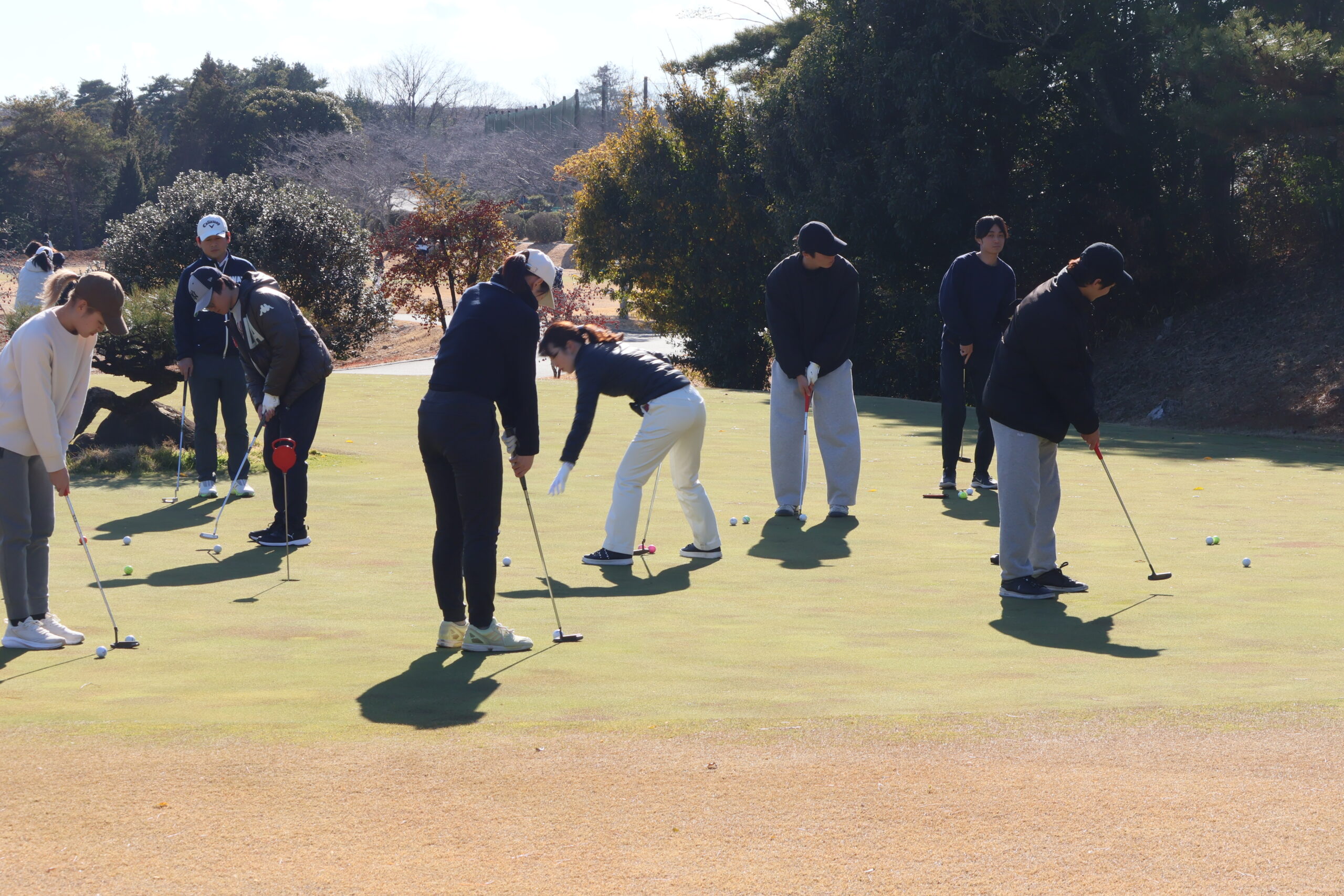 今回は、指導の先生1名、アシスタントのゴルフ部学生1名を含む15名の皆さんです。